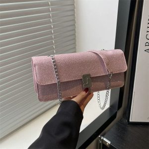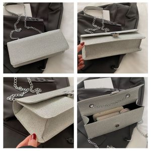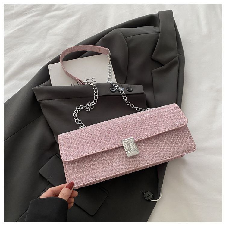 Versatile Metal Buckle Square Shiny Handbag ASC396